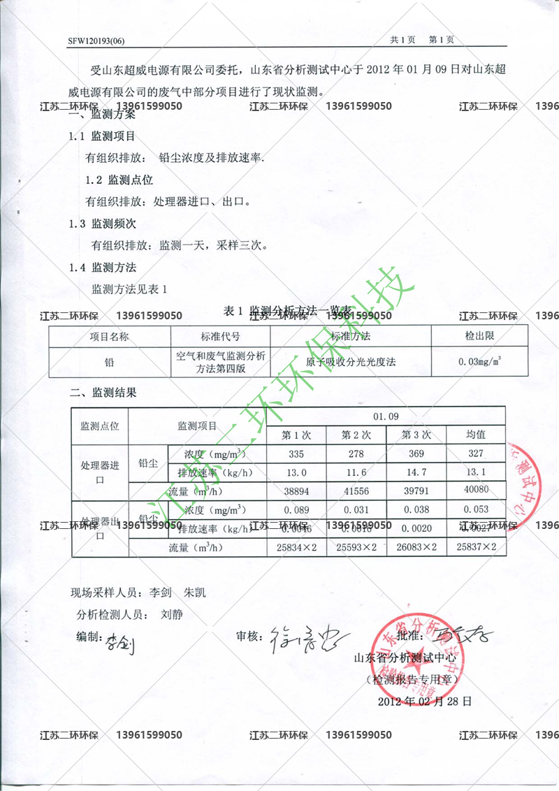 1、單臺除塵器的年排放總量是90公斤/年