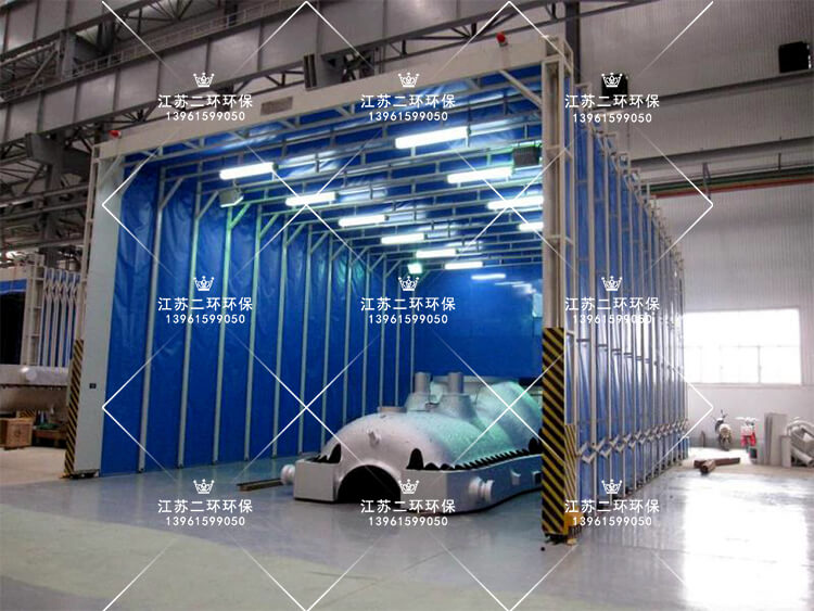 7、對(duì)于較大的打磨拋光工件,要考慮到行車叉車的搬運(yùn)方便,因此可以搭建移動(dòng)式的伸縮帆布房子。打磨拋光時(shí)展開,吊裝時(shí)收縮起來。