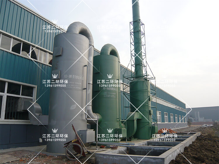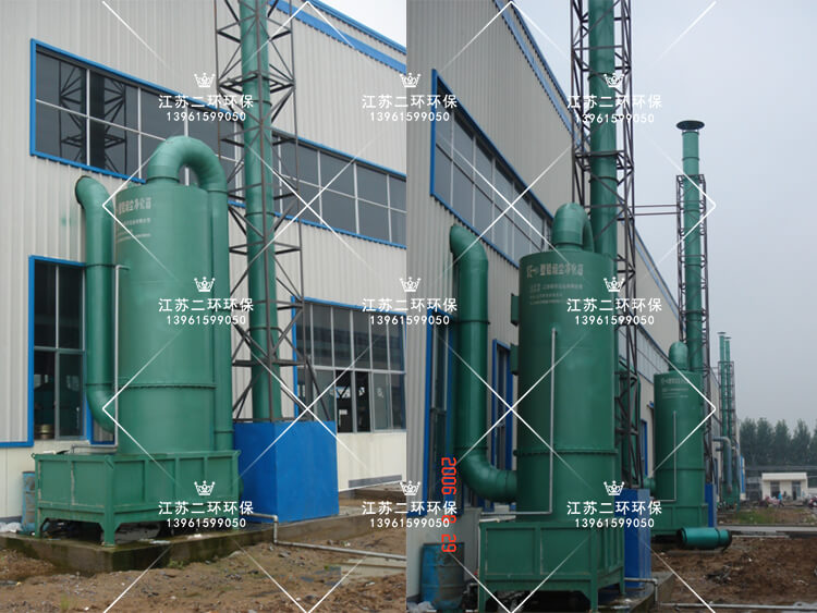 含煙的空氣由管道在風(fēng)動力正壓作用下,進(jìn)入鉛煙凈化裝置塔體的下部,迅速充滿進(jìn)氣段,與部噴淋水在筒體的內(nèi)壁形成水膜,使含煙氣體得到初步的碰撞和潤濕,然后氣流通過均流段上升至下一級角鋼條縫層,氣體與噴淋的水在條縫層表面形成的水膜,相互之間進(jìn)行紋動,發(fā)生充分的傳質(zhì)反應(yīng)將粉塵去除,生成的混合物質(zhì),隨水流入下部貯存箱,未完全被吸收的煙氣繼續(xù)上升進(jìn)入第二、三級條縫段,吸收液均布的噴嘴高速噴出,形成無數(shù)細(xì)小霧滴與氣體充分混合接觸,繼續(xù)發(fā)生碰撞、潤濕、吸收反應(yīng),使含煙氣體得到進(jìn)一步的去除,經(jīng)處理后的氣體進(jìn)入塔體頂部的活性炭層,對凈化后的氣體進(jìn)一步處理,含水氣體通過折流板除霧器,把氣體中夾帶的霧滴在這里被清除下來,凈化后潔凈的氣體排入大氣。