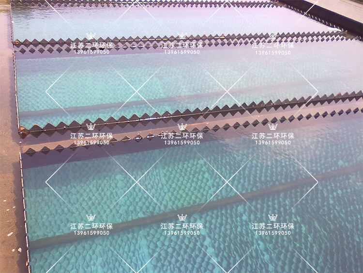 5、高效凈化處理:斜板沉淀器設(shè)置混凝反應(yīng)區(qū)、主流區(qū)、過渡區(qū)、斜板區(qū)、清水區(qū)等 5 個(gè)區(qū):混凝反應(yīng)區(qū)的主要作用是通過 PACPAM 的作用將廢水中細(xì)小的難以沉降的物質(zhì)捕集,使之成為較易沉降的礬花。主流區(qū)位于斜板沉淀池底部的流動(dòng)區(qū),它的主要作用是傳輸待分離的混合液進(jìn)入斜板區(qū),沉淀后的污泥又從此處進(jìn)入斜板沉淀池污泥斗。過渡區(qū)的作用是消能和調(diào)整流態(tài),防止污泥上翻,保證固液分離效果;同時(shí),它還具有均勻進(jìn)水和作為污泥回流通道等功能,起著雙向傳輸?shù)淖饔谩P卑鍏^(qū)是泥水分離的實(shí)際區(qū)域,在這里,污泥絮凝體形成并在重力作用下沉降到斜板上,澄清后的污水進(jìn)入清水區(qū)。清水區(qū)能夠分隔沉淀工作區(qū)與出水堰,使斜板區(qū)的沉降過程不受出水水流影響;鋸齒形溢流堰比普通水平堰更易加工也更易保證出水均勻。