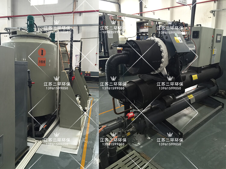 利用風(fēng)冷式冷凍機(jī)或螺桿水冷機(jī)冷凍制冷,冷凍機(jī)自身帶有高效熱交換器,冷凍壓縮機(jī)制冷傳導(dǎo)給冷凍劑R22(乙二醇),溫度保持在-10攝氏度以上,形成冷凍水,存儲(chǔ)在冷凍水箱中。冷凍水與常溫稀硫酸,通過耐腐石墨管熱交換器進(jìn)行熱量交換,石墨管內(nèi)壁走流動(dòng)的稀硫酸,石墨管外壁走流動(dòng)的冷凍水。兩種液體存在較大的溫差梯度,常溫稀硫酸的熱量快速被石墨管外壁的低溫冷凍水帶走,從而使得稀硫酸能夠快速的被冷卻。整個(gè)過程在密閉的容器中進(jìn)行,沒有酸霧飄逸,安全可靠。