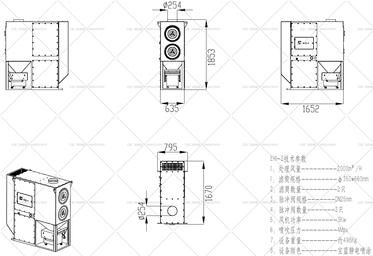 EHI-2型激光切割濾筒除塵器技術(shù)圖(下圖)