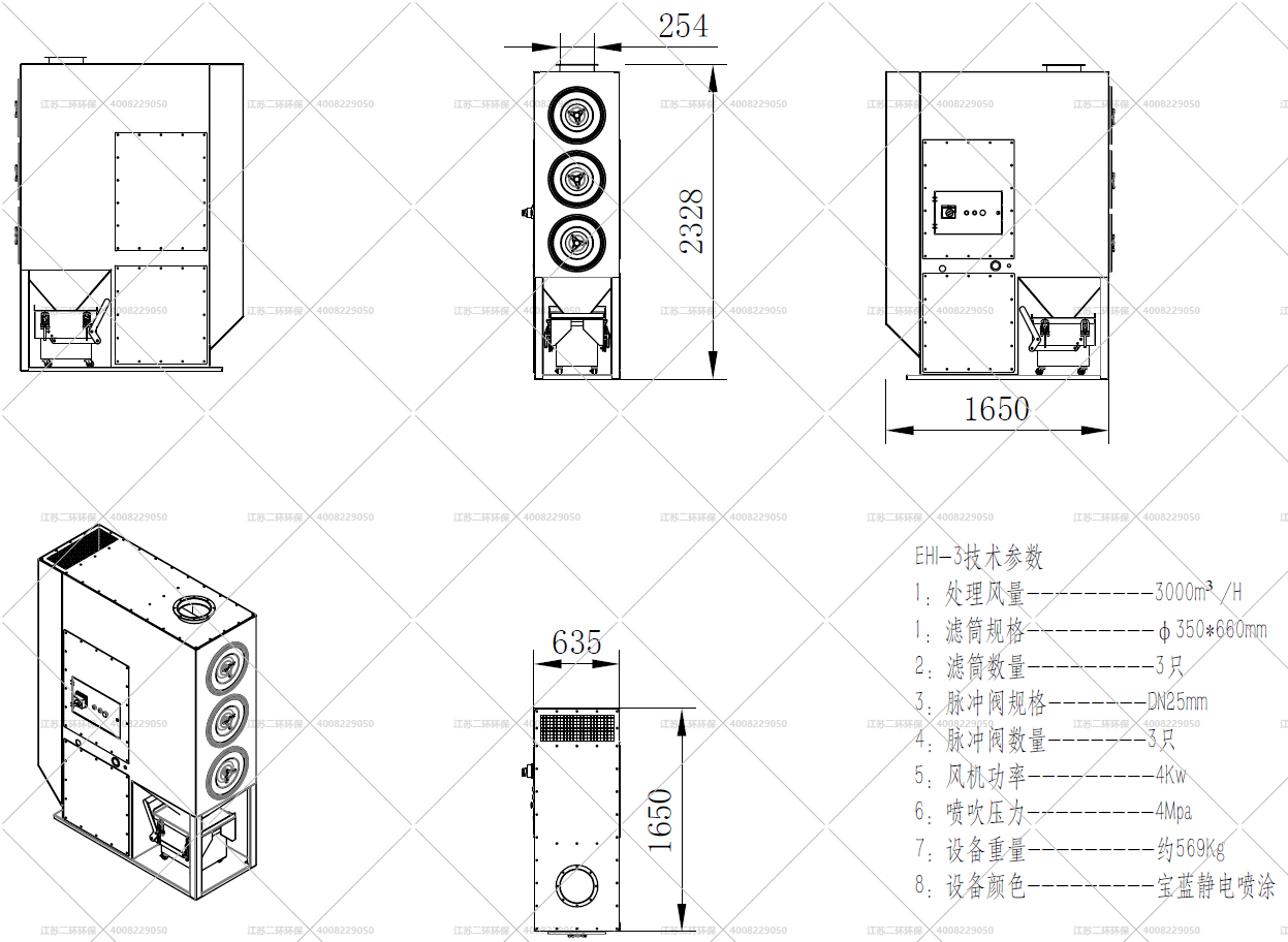 EHI-3型激光切割濾筒除塵器技術(shù)圖(下圖)