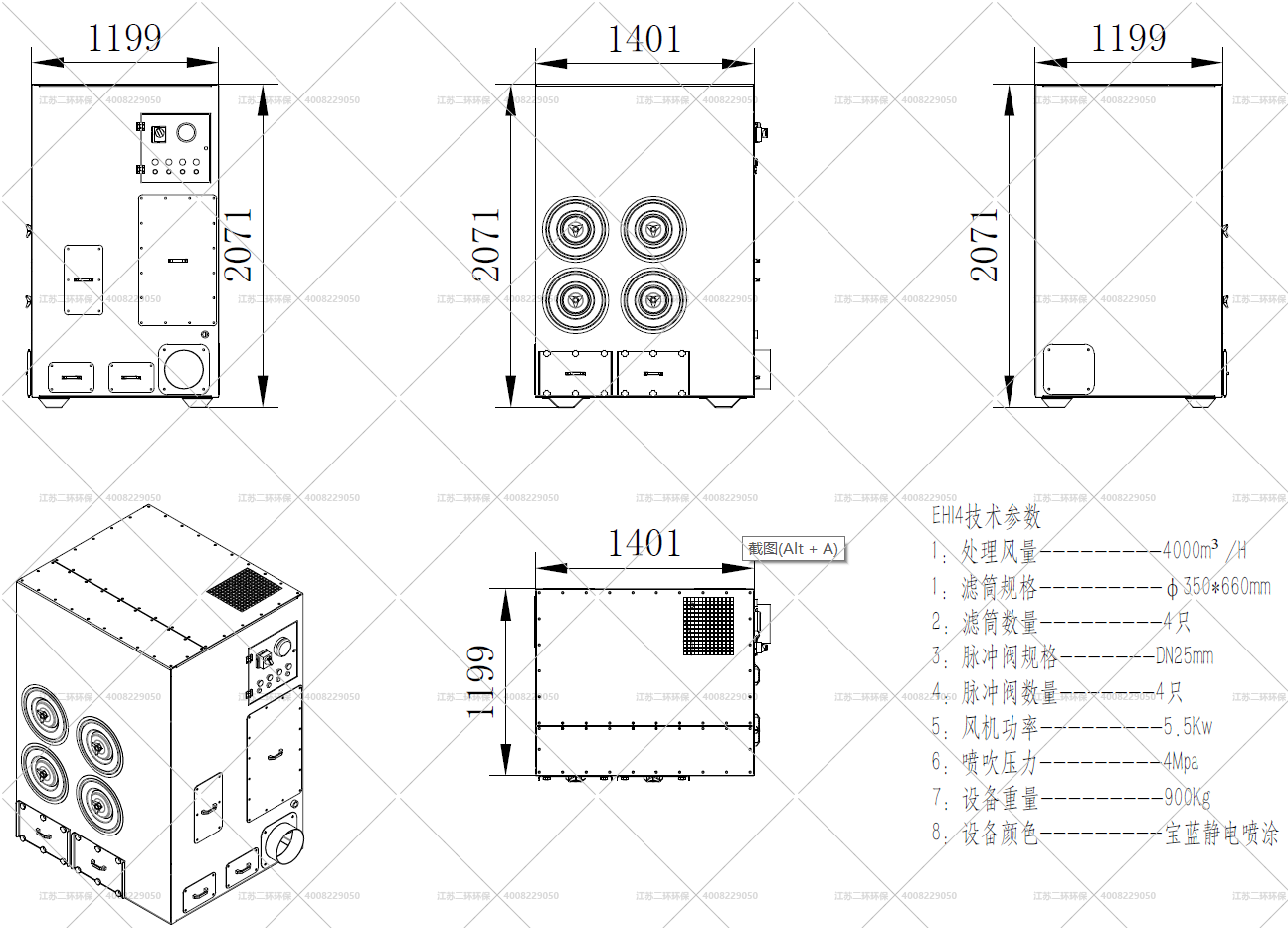 EHI-4型激光切割濾筒除塵器技術(shù)圖(下圖)