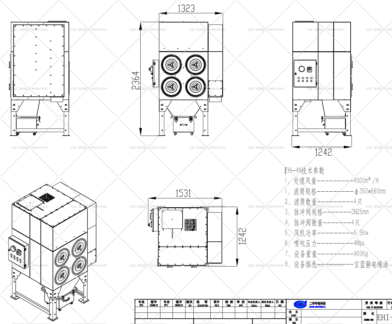EHI-4N型激光切割濾筒除塵器技術(shù)圖(下圖)
