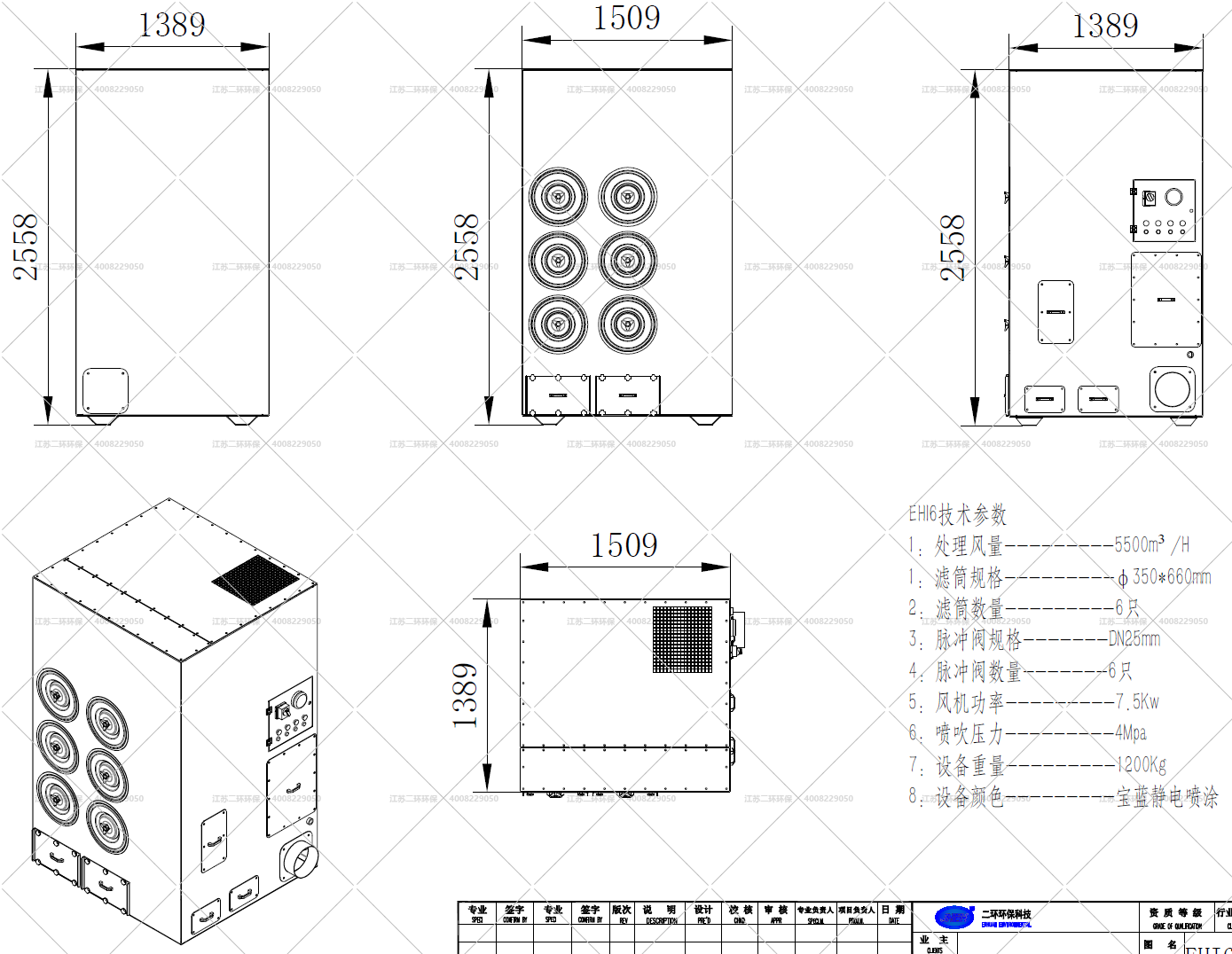 EHI-6N型激光切割濾筒除塵器技術(shù)圖(下圖)