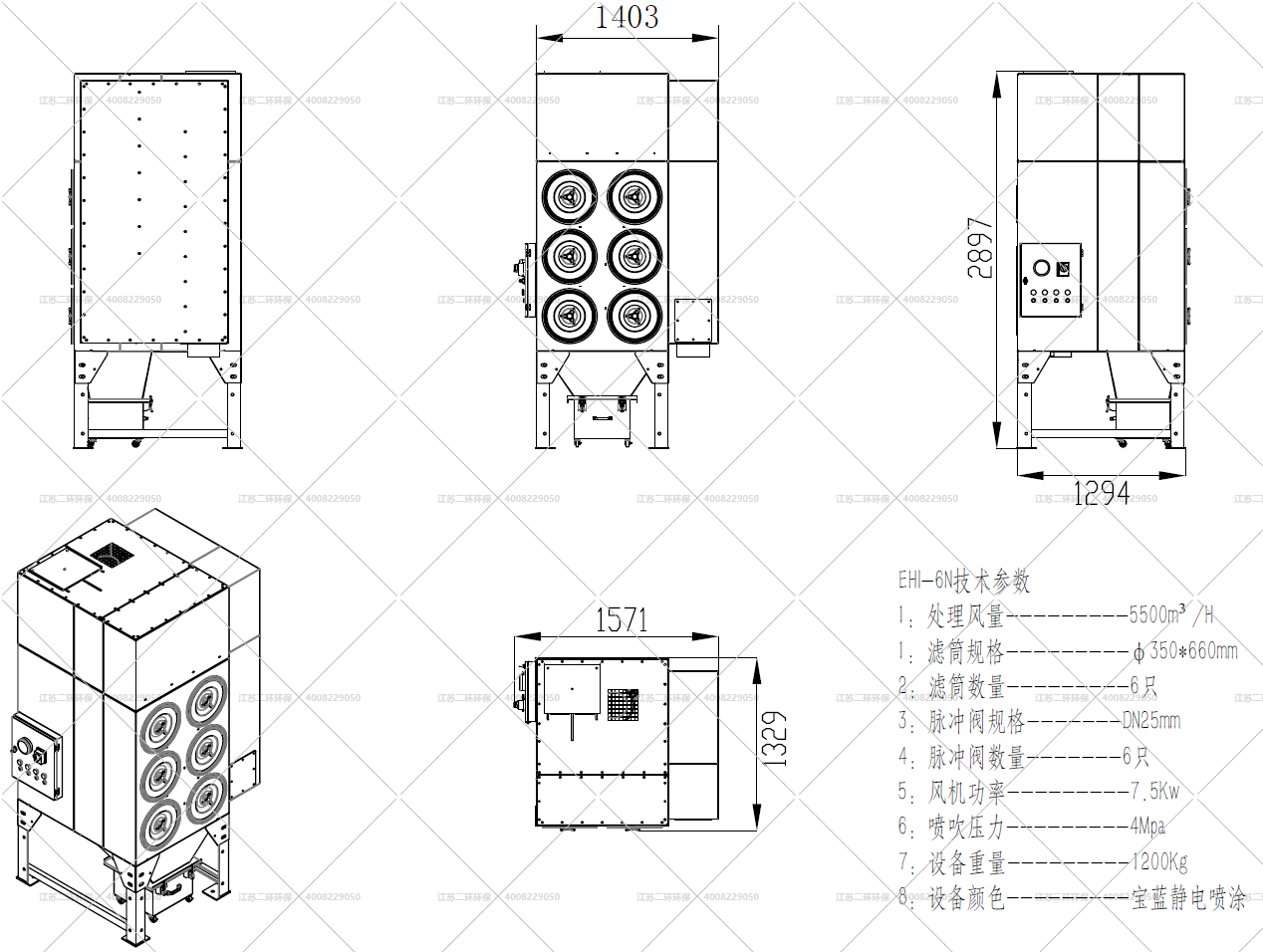 EHI-6型激光切割濾筒除塵器技術(shù)圖(下圖)