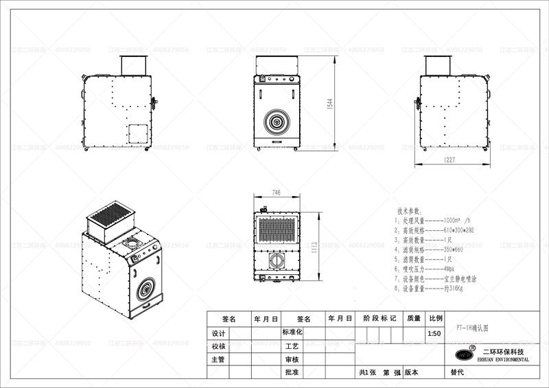 3、PT-1H型移動(dòng)焊煙單機(jī)圖紙(下圖)注意:濾筒+活性炭=2級(jí)過濾喔!